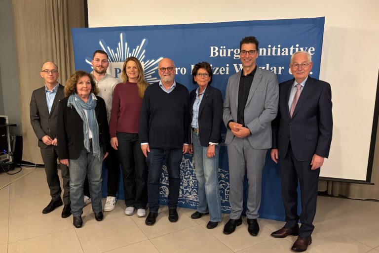 …einer Bürgerinitiative, die im Juli 1996 gegründet wurde mit dem Ziel, die Polizei ideell und materiell zu unterstützen und zugleich präventiv tätig zu werden. In den vielen Jahren unseres Bestehens konnten wir weit über 200.000 Euro in die Verbesserung der Ausstattung unserer Wetzlarer Polizeistation investieren. Wir haben zehntausende Euro investiert in Prävention, in Beratung, in Veranstaltungen, gerade auch im Bereich von Grundschulen und Kindertagesstätten, in Sicherheitsausrüstungen, Sicherheitskleidung und anderes mehr.