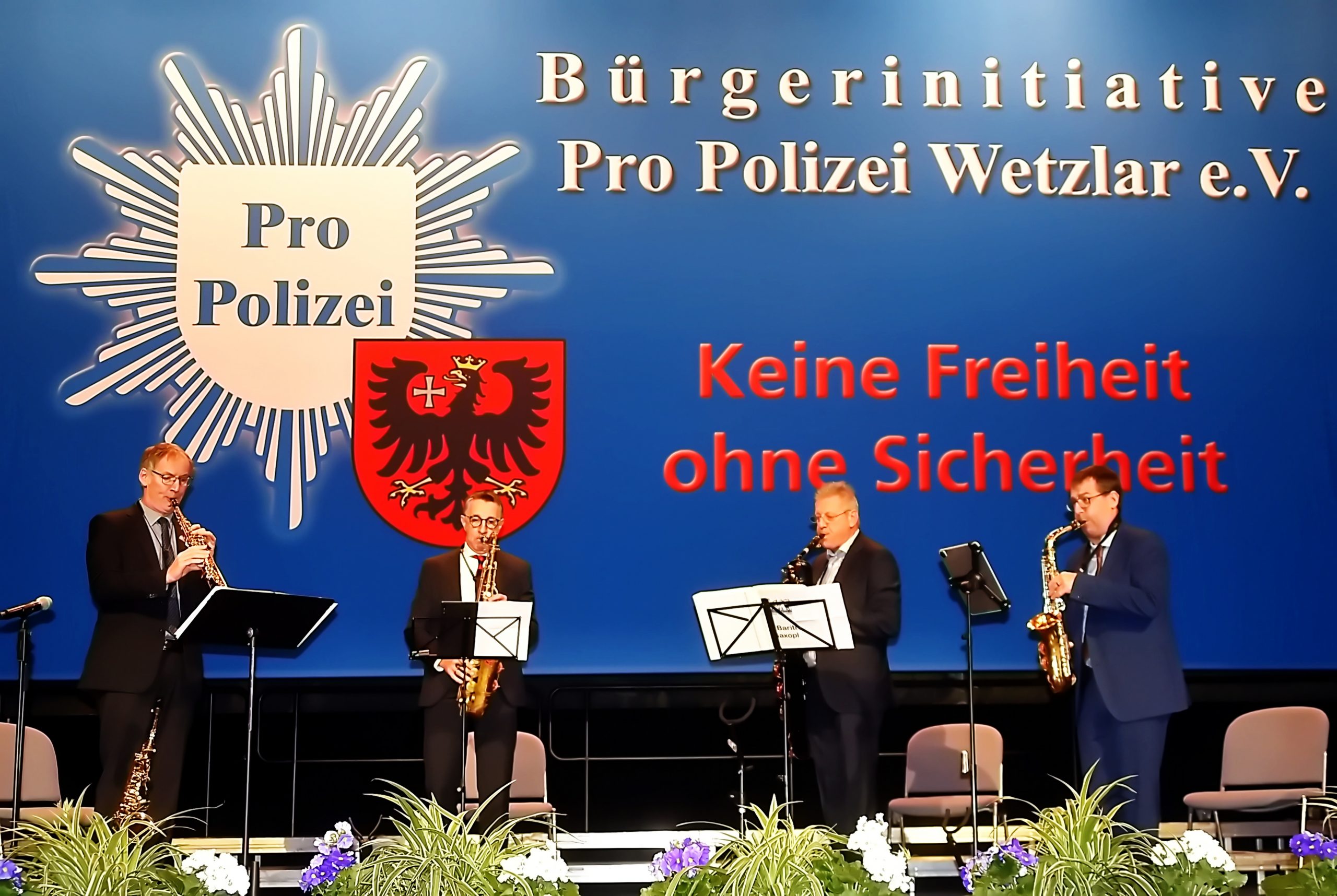 Die musikalische Komponente des Neujahrsempfangs steuerte das heimische Saxophon-Quartett „Saxism“ bei. Grußworte entboten Nicole Petersen, stellvertretende Vorsitzende des Kreistages Lahn-Dill für die heimische Kommunalpolitik, sowie Joachim Bernard, Leiter der Polizeidirektion Lahn-Dill für die heimische Polizei. Unter anderem mit der Feststellung, dass laut der aktuellen Kriminalstatistik der Lahn-Dill-Kreis zu den sichersten im Hessenland zählt.